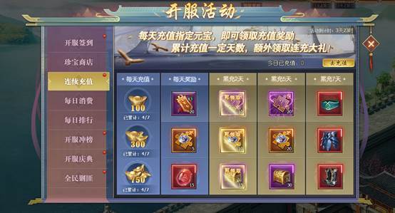 - 活动持续七天,每天充值都达到指定数额,还可领取稀有道具!