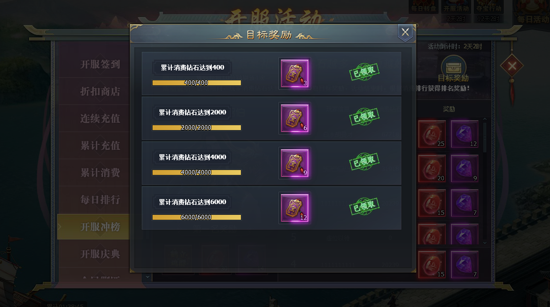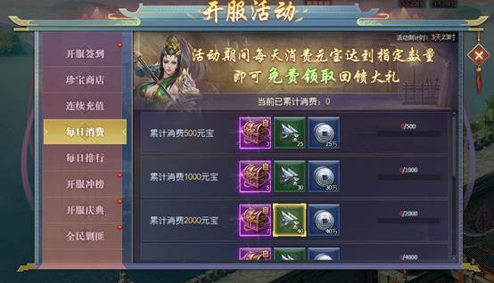 - 活动期间,当天消费指定数量钻石可免费领取豪华大礼。