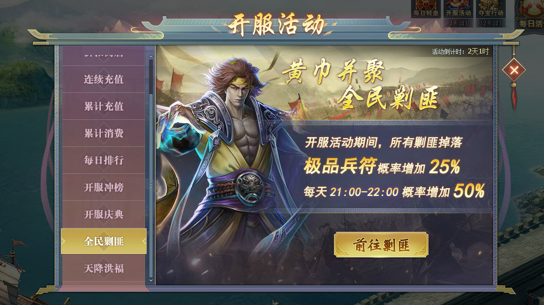 - 活动期间,每晚21点-22点时剿匪掉落极品兵符的概率大幅提升。